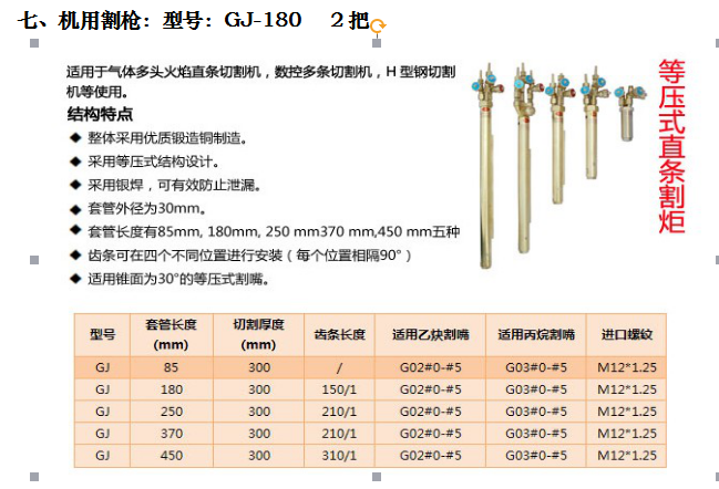 *本產(chǎn)品在用戶無特殊要求時(shí),標(biāo)配乙炔割嘴